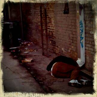This is a photo I took from my phone of an alley near where I work. Although the subject matter is sort of depressing, it is still visually interesting